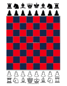 Cut these black and white chess pieces out in order to play chess on this printable red-and-blue checkered board. Instructions are included.