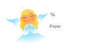 This gift tag features a light-haired angel with hands clasped in prayer and is especially suitable for printing on colored paper.