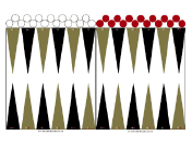 This tan-and-black backgammon board has white and red checkers and is a perfect game for two people. Instructions are included. This game requires two dice.