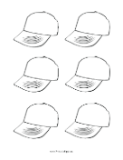 A set of 6 blank baseball cap templates on one sheet, perfect for designing hats for fun or fundraising. Each is approximately 3 inches in size.