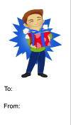 This free birthday gift tag features a very pleased young man holding a birthday present and is especially suitable for printing on colored paper.