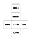 A foldable die to assemble and use to gamify chores such as laundry, vacuuming, and decluttering. Roll the die, set a timer, and do your chores.