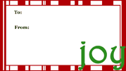 The word "joy" in green is set against a candy cane border in this Christmas gift tag.