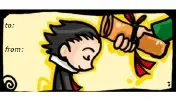 A graduate is presented with a rolled-up diploma on this cartoon-style printable gift tag.