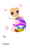 This printable gift tag features an Easter lamb holding a colorful Easter egg and is especially suitable for printing on colored paper.