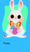This printable gift tag features an Easter Bunny wearing a colorful bow and holding several colorful Easter eggs.
