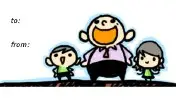 A dad and his two kids happily celebrate Father's Day on this printable gift tag.