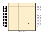 This printable go board has 81 black and white tiles on a 9x9 line board.