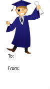 This free graduation gift tag features a new graduate waving his diploma in the air and is especially suitable for printing on colored paper.