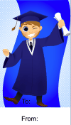 This free graduation gift tag features a new graduate waving his diploma in the air.
