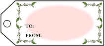 Leaves and berries frame this gift tag on a pink background. Ten tags print per sheet.