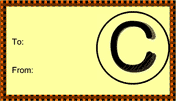 This free, printable monogram gift tag features the letter C with an orange plaid border. Up to ten presents can be tagged and signed for holidays and parties.