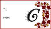Drawn in flowing, cursive script, the letter C decorates this free, printable monogram gift tag. Users can fill in the to and from sections and attach them to presents.