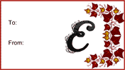 The letter E is written in beautiful scrollwork script on this free, printable monogram gift tag. It can be filled in and taped onto presents for all special occasions.
