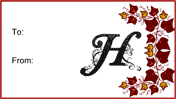 Perfect for Christmas, birthdays, holidays and parties, these free, printable monogram gift tags feature the letter H in cursive scrollwork on a fall leaf border.