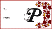A cursive letter P decorates each of these free, printable gift tags with a fall leaf background. Users can fill in the recipient and sender names and attach them to presents.