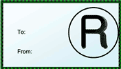 Perfect for holiday gift-giving events, these free, printable gift tags feature the letter R surrounded by a green plaid border.