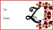 The letter Z is written in beautiful scrollwork script on this free, printable monogram gift tag. It can be filled in and taped onto presents for all special occasions.