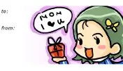 A little girl presents a gift while telling mom she loves her on this printable Mother's Day gift tag.
