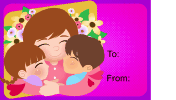 This free Mothers Day gift tag features young children sharing a hug with mommy.