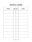 A very simple sheet for speed dating, with room for names as well as yes, no, and notes.