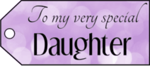Celebrate birthdays, graduations and other special occasions with this printable purple gift tag addressed to a daughter.