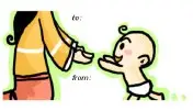 A baby walks to a grownup on this printable gift tag, good for a baby shower, Mother's Day, or other child-centered occasion.