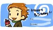 A boy with a present wishes Happy Birthday on this printable gift tag.