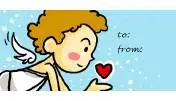 A winged cupid captures a heart on this printable gift tag for Valentine's Day.