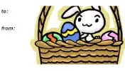 The Easter bunny is in a basket of colored eggs on this printable gift tag.