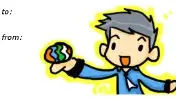 This printable gift tag shows a boy presenting a dyed Easter egg.