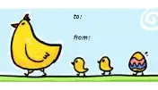 Easter chicks follow their chicken mom on this printable gift tag that shows the final chick emerging from a colored egg.
