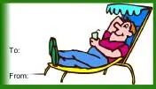 A dad relaxes in a hammock while holding a beverage on this green-bordered printable gift tag for Father's Day.