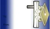 A scroll and mortarboard sit on a blue background on this distinguished printable gift tag.