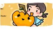 A girl holds a pumpkin that is partway to jack-o-lantern status on this printable Halloween gift tag.