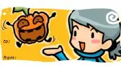 A girl and a wide-mouthed jack-o-lantern are the focus of this printable gift tag for Halloween.