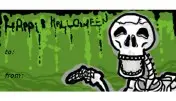 A creepy skeleton wishes you a happy Halloween on this printable gift tag.
