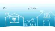 Every window displays a lit menorah on this blue printable gift tag for Hanukkah.