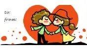 A cute couple shares a kiss on this heart-filled printable gift tag for Valentine's Day or any romantic occasion.