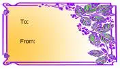 A leaf design intertwines with a purple border on this printable gift tag that is appropriate for all kinds of occasions.