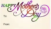 This printable gift tag says Happy Mother's Day in a rainbow script that looks almost like embossed. A rose accents the text.