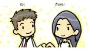 Two happy newlyweds hold hands on this printable gift tag for a wedding.