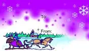 A horse carries a sled through the Victorian countryside on this printable Christmas gift tag.
