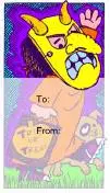 The child in this printable Halloween gift tag wears a cute but creepy devil witch mask while trick-or-treating.
