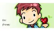A boy holds a heart-shaped gift aloft on this printable gift tag for Valentine's Day.